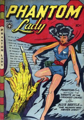 This plot, probably by Ruth Roche, was reused, but totally-redrawn for the Comics Code-approved Phantom Lady #3 in 1955!